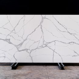 When we constructed this website all the images you can see of Quartz were available and in stock, but if you were to order the same Quartz today the same stone will now be different as they are manufactured in batch runs of 1000 slabs and then distributed all over the world and the next batch runs will continue to be manufactured at different times, so there will always be batch variations. No two batch runs are identical, there will be batch differences such as shade of colour, design pattern and density of the pattern. Images and photos are not a true 100% representation of the physical appearance of the actual stone. Quartz samples we show you are just to give you some idea and indication to how the stone can look, but are NEVER identical.